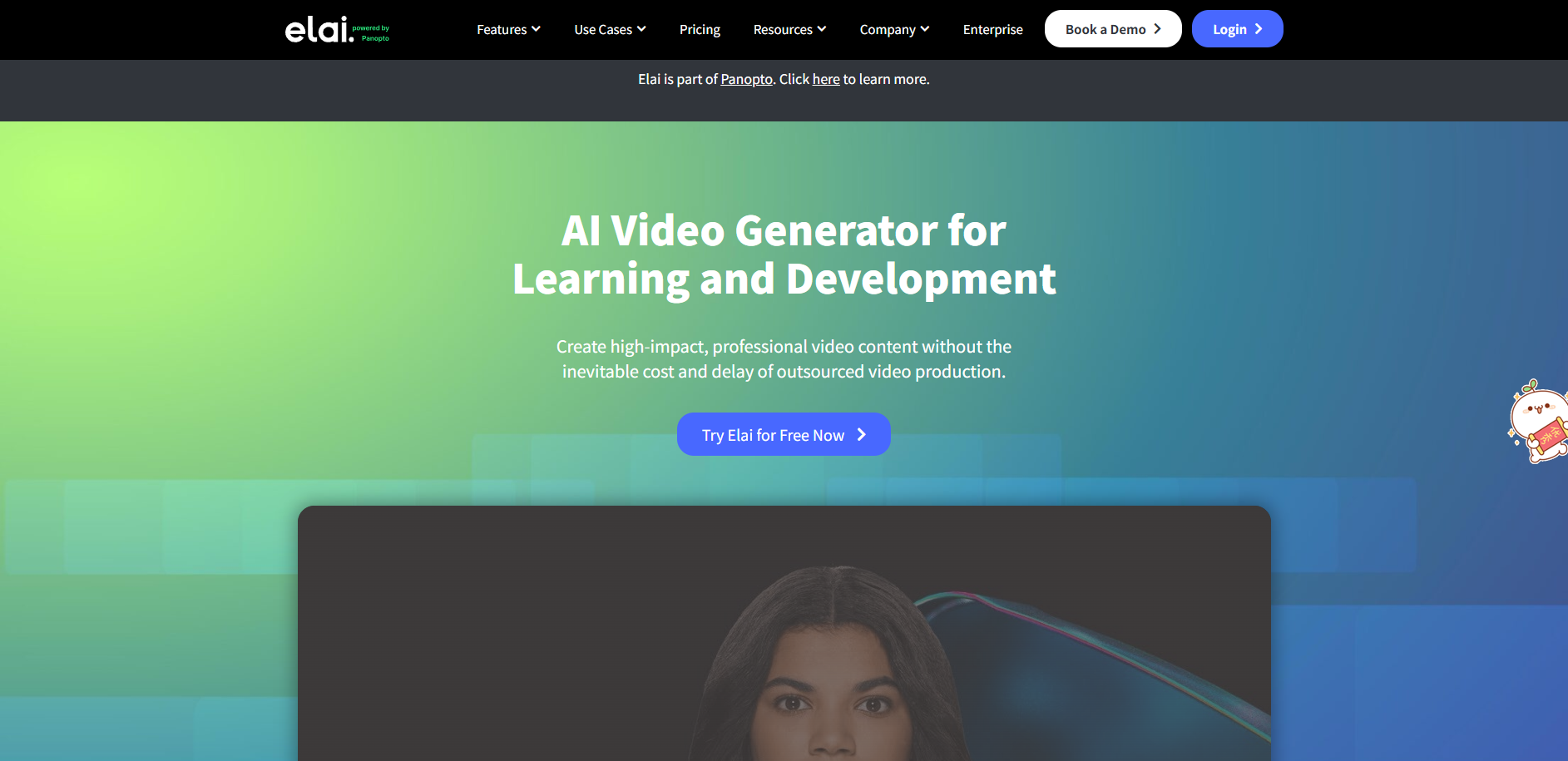 Elai.io is a browser-based AI video generator that transforms text, PPTs, blogs, or URLs into professional narrated videos using AI avatars—no camera or studio needed. It excels in e-learning, corporate training, marketing, and personalized content with high customization.