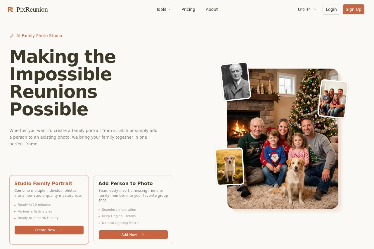 PixReunion isn't just AI—it's a quiet way to heal, celebrate, remember. In 2026, with families farther apart than ever, this tool bridges gaps with dignity and warmth. Affordable, respectful privacy, results that move people. If you've ever wished for one more photo together... this might be it.