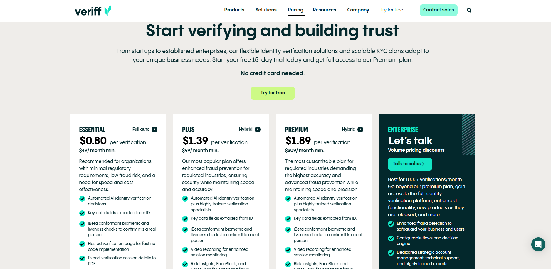 Start your 15-day free Premium trial—no card needed. Verify users securely and compliantly today.